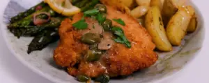 BONELESS SKINLESS CHICKEN BREAST, WATER, SEASONING (SUGAR, SALT, SPICES INCLUDING PAPRIKA AND CELERY SEED, CHICKEN FAT, SPICE EXTRACTIVE, CANOLA OIL, SOYBEAN OIL), RICE STARCH. BREADED WITH: WHEAT FLOUR, SUGAR, SALT, NONFAT DRY MILK, DRIED EGG WHITES, BAKING POWDER, SPICE, PAPRIKA. BREADING SET IN VEGETABLE OIL. Contains: Milk, Eggs, Wheat