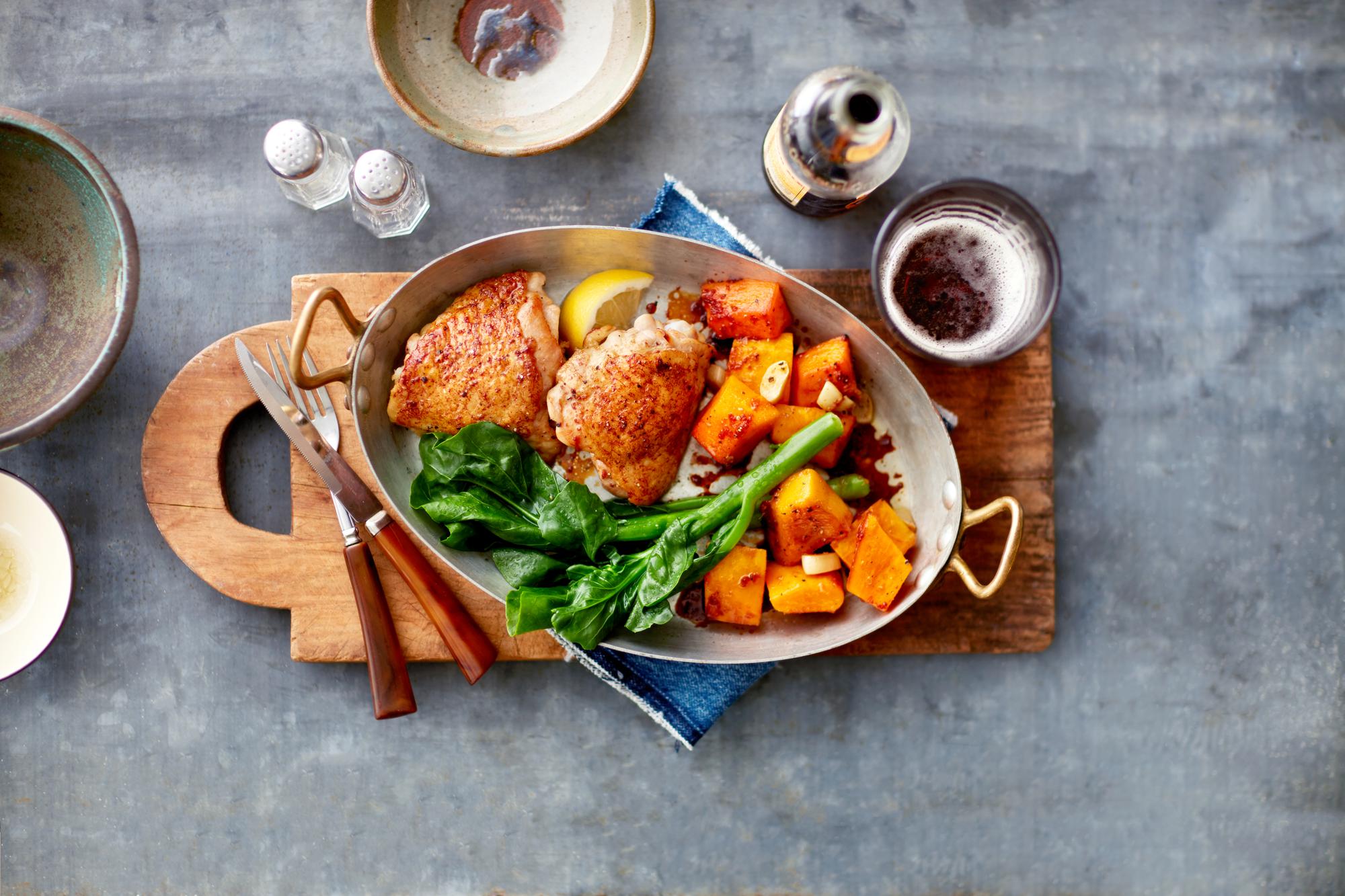 Serve this warming sweet-savory chicken dish with steamed Chinese gai lan (broccoli) and fragrant jasmine rice. Substitute other hard winter squash if you’d like, like Buttercup, Kabocha, or Butternut.