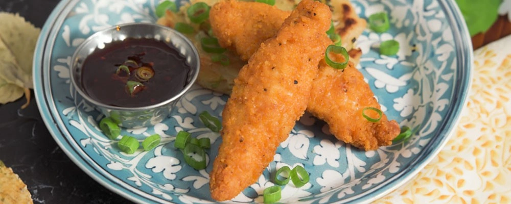 Scallion Pancakes and Lightly Breaded Chicken Breast Strips